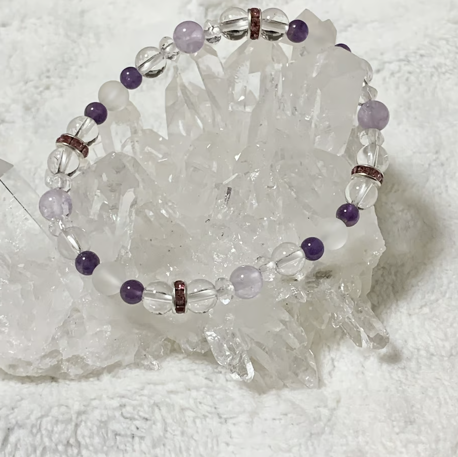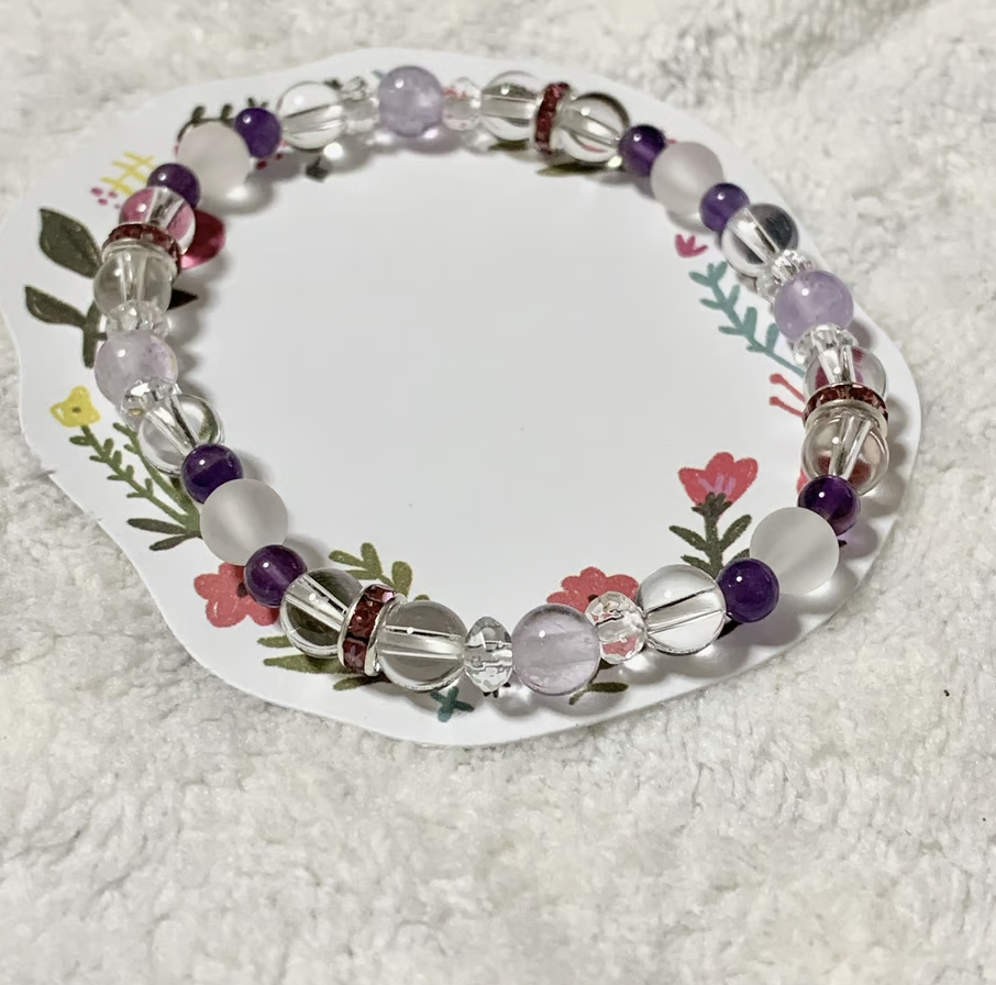 天然石ブレスレット。アメジストを使ったブレスレット。ラベンダーアメジストとの組み合わせで、優しさを表現しました。